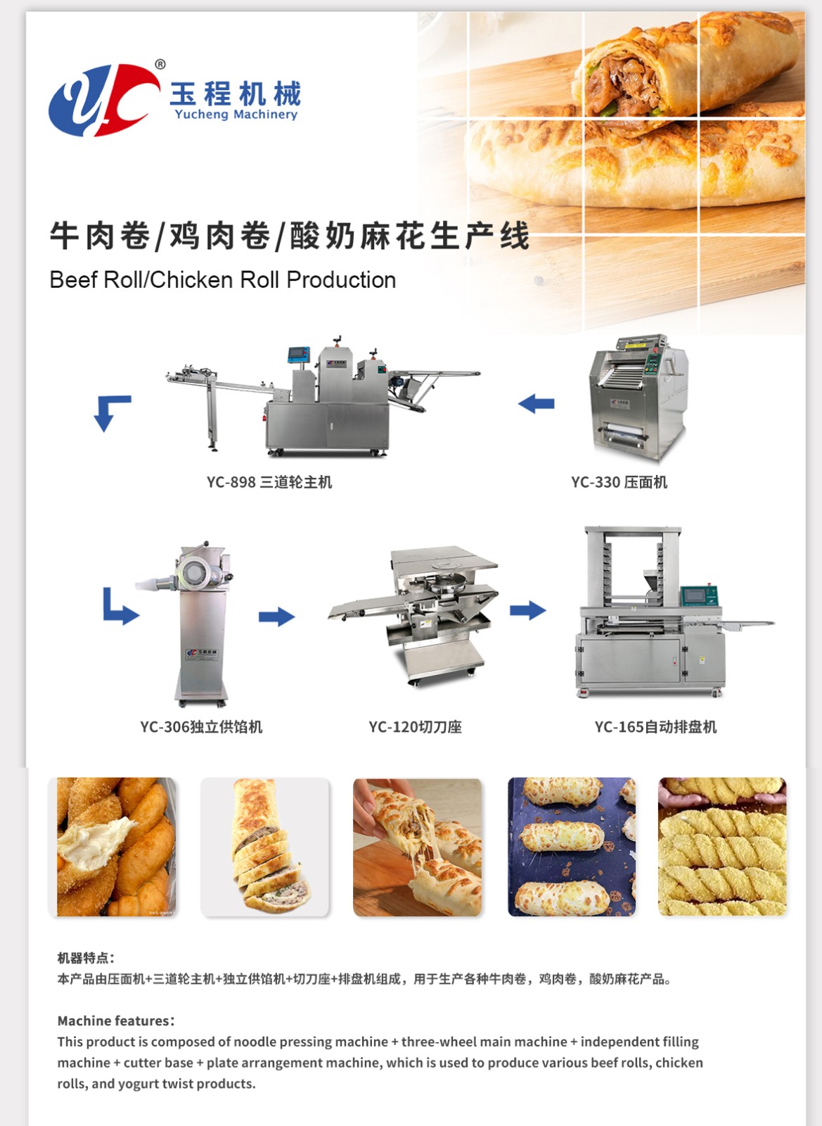 牛肉卷/雞肉卷/酸奶麻花生產線
