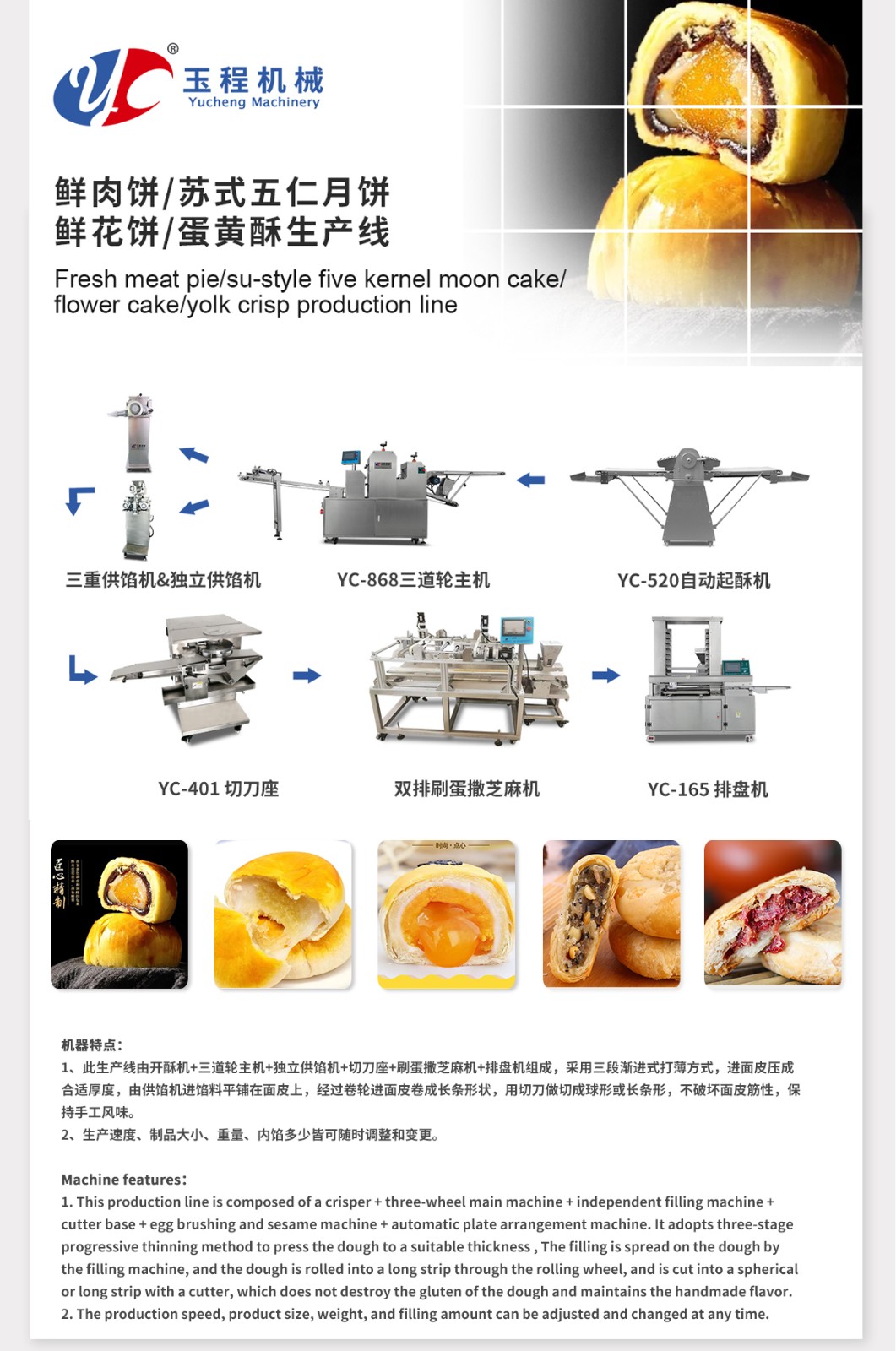 鮮肉餅/蘇式五仁月餅/鮮花餅/蛋黃酥生產(chǎn)線