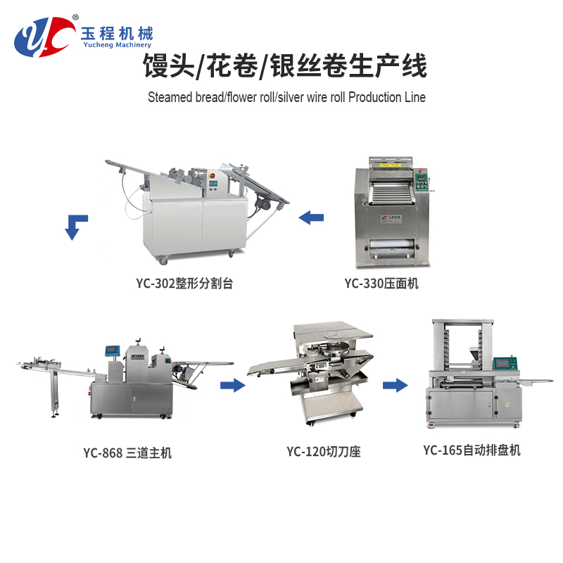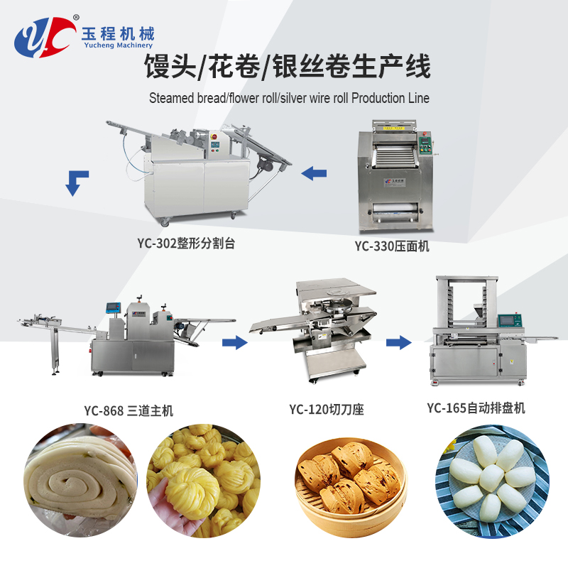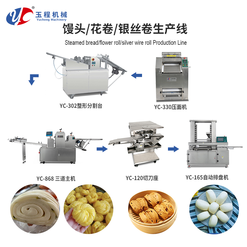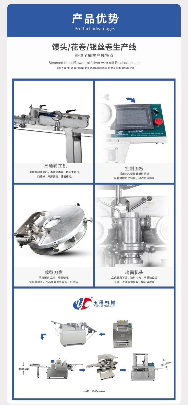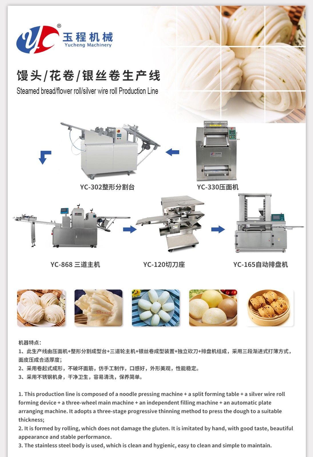本生產線由開酥機+三道輪酥餅主機+三重供餡機+酥餅切刀座+刷蛋液撒芝麻機+自動排盤機組成,制作各種酥類產品,節省人工,提高產能。