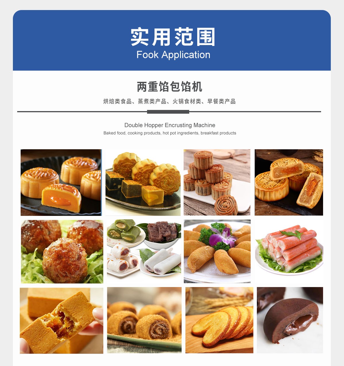 可適用于:烘焙類產品、蒸煮類產品、早餐類產品、魚漿類食品等